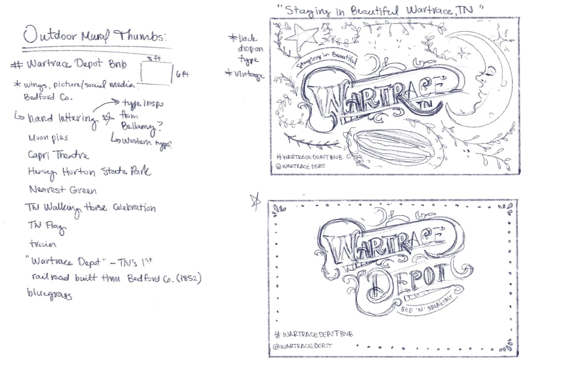 For this mural, the client wanted his AirBnb, the Wartrace Depot, to have something that spoke to the beautiful night skies of Wartrace, Tennessee.
